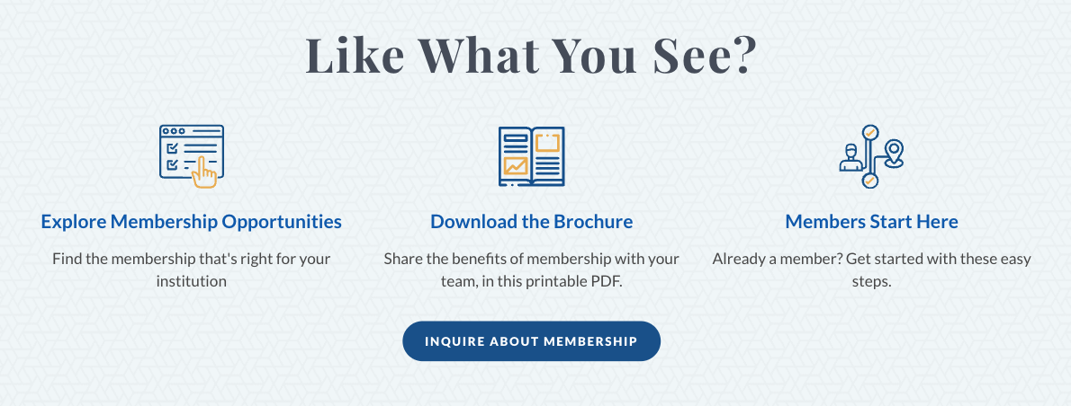 Use existing membership stats to call out bite-sized ‘data-driven’ reasons to join. Seen below on the new microsite, ‘96% of member banks, spanning all sizes and charters, renew annually’